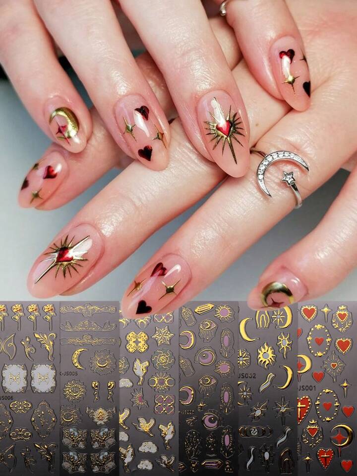 Source : www.rainyroses.com6pcs/Set Star & Moon Metallic Nail Art Stickers | SHEIN USA